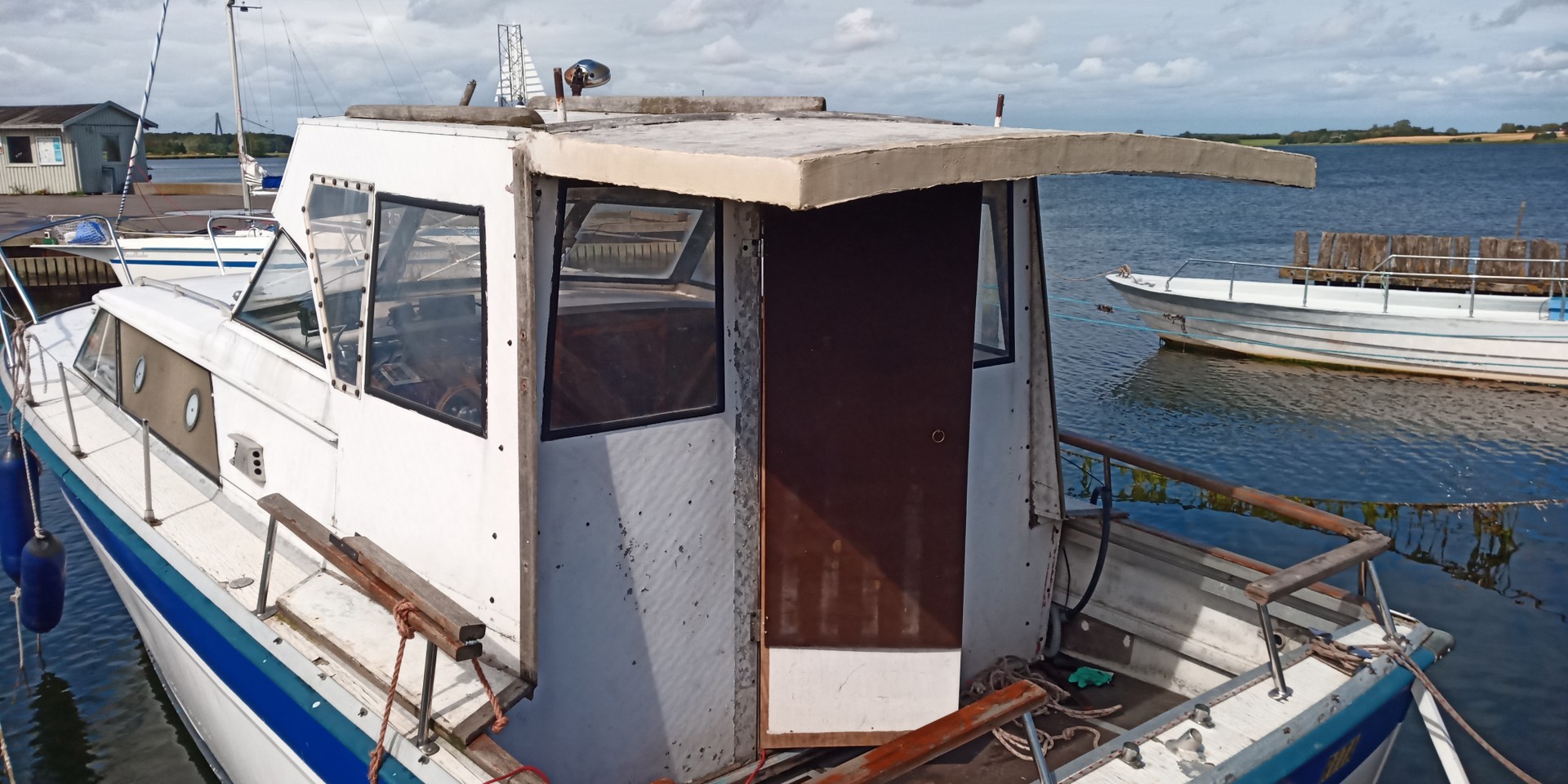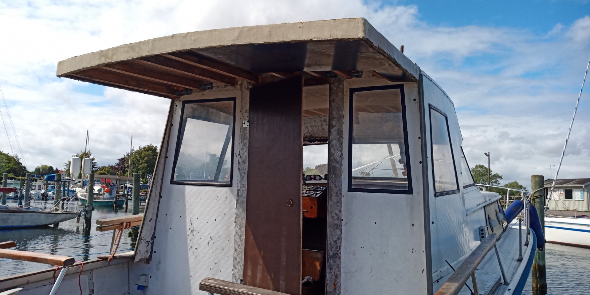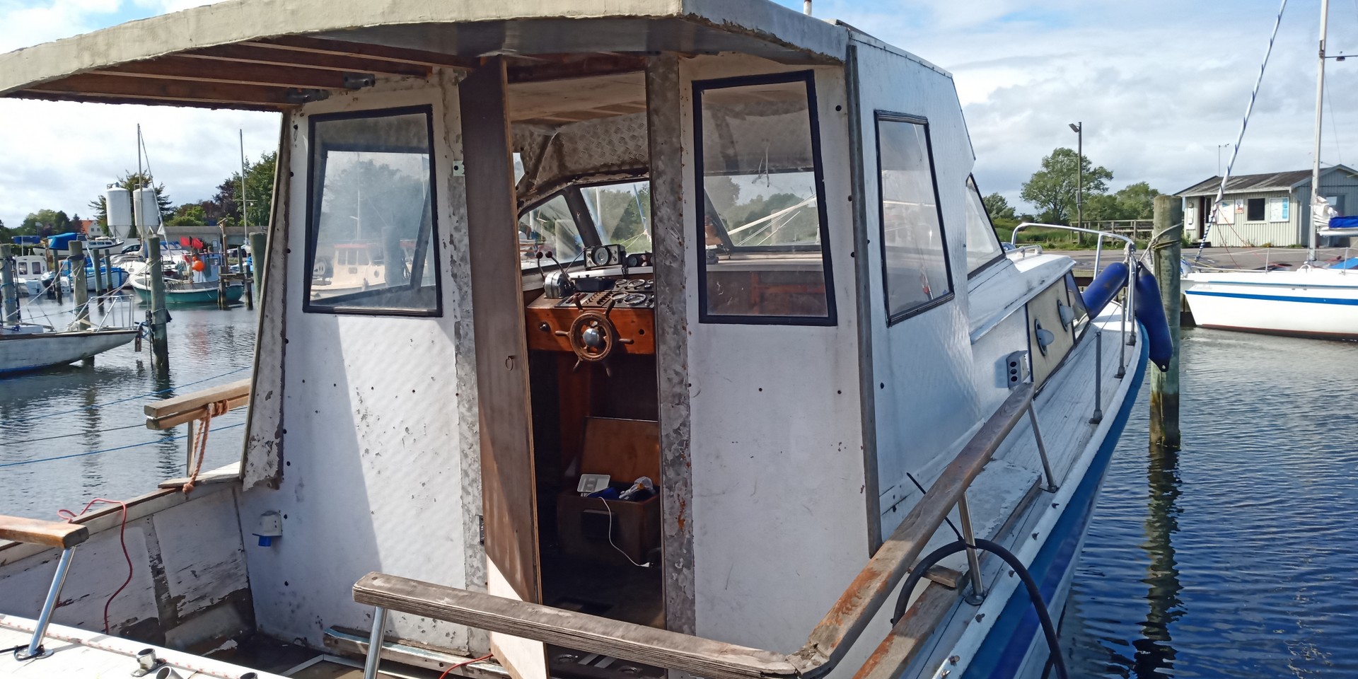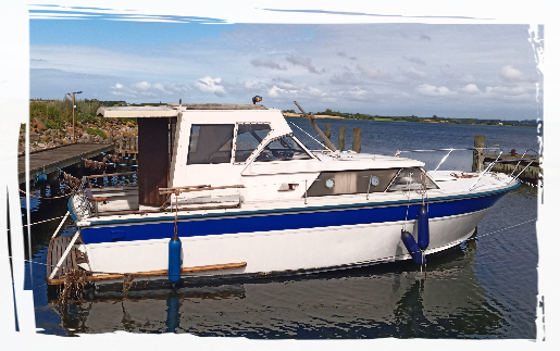 ... denn obwohl es nicht das Modernste ist, so hat dieser Bootstyp einige interessante Sachen: Der Rumpf ist aus Aluminium und als Antrieb werkeln zwei V6-Motore mit jeweils Z-Antrieb. Ein hübsches Projekt für den geübten Bastler. Gewicht ca. 3,5 Tonnen. Liegeplatz: Dänemark.