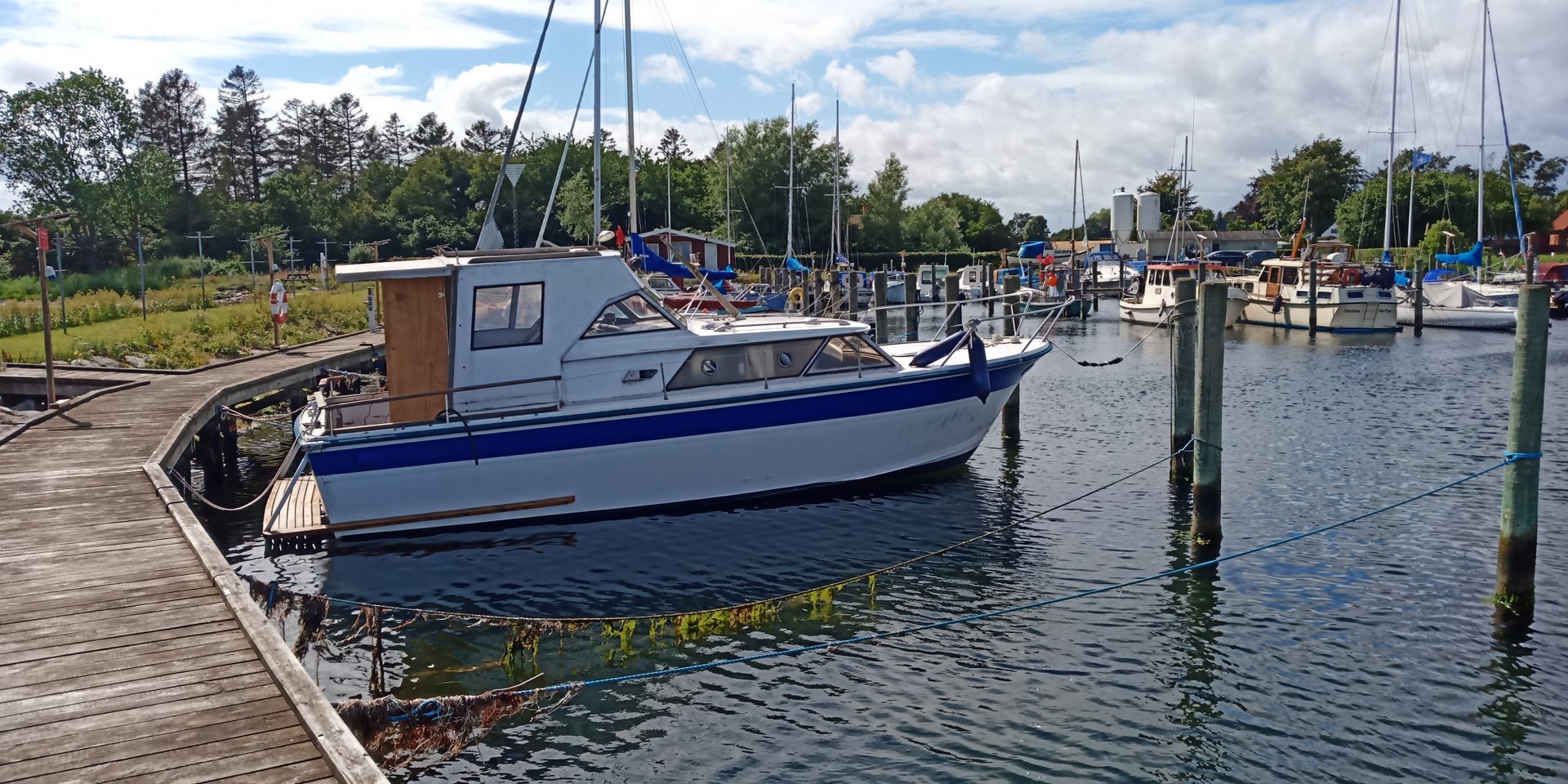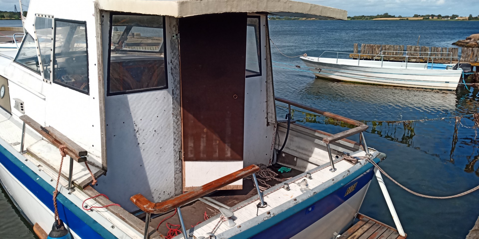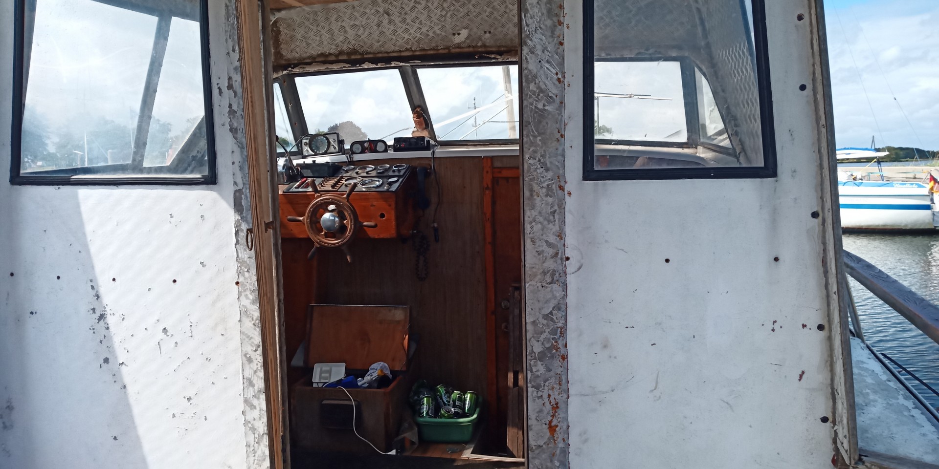 ... denn obwohl es nicht das Modernste ist, so hat dieser Bootstyp einige interessante Sachen: Der Rumpf ist aus Aluminium und als Antrieb werkeln zwei V6-Motore mit jeweils Z-Antrieb. Ein hübsches Projekt für den geübten Bastler. Gewicht ca. 3,5 Tonnen. Liegeplatz: Dänemark.